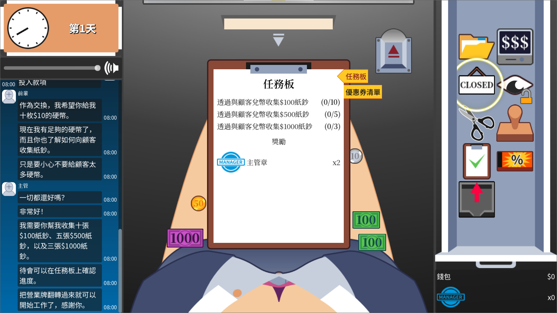 Serve the customers, complete the quests, and help the company expand its business.
